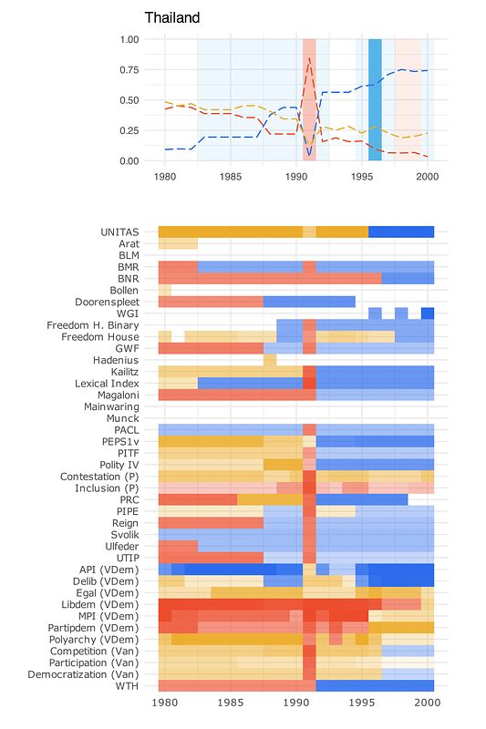- Enables analysis of longer regime sequences (e.g., sustained transitions, failed democratization)